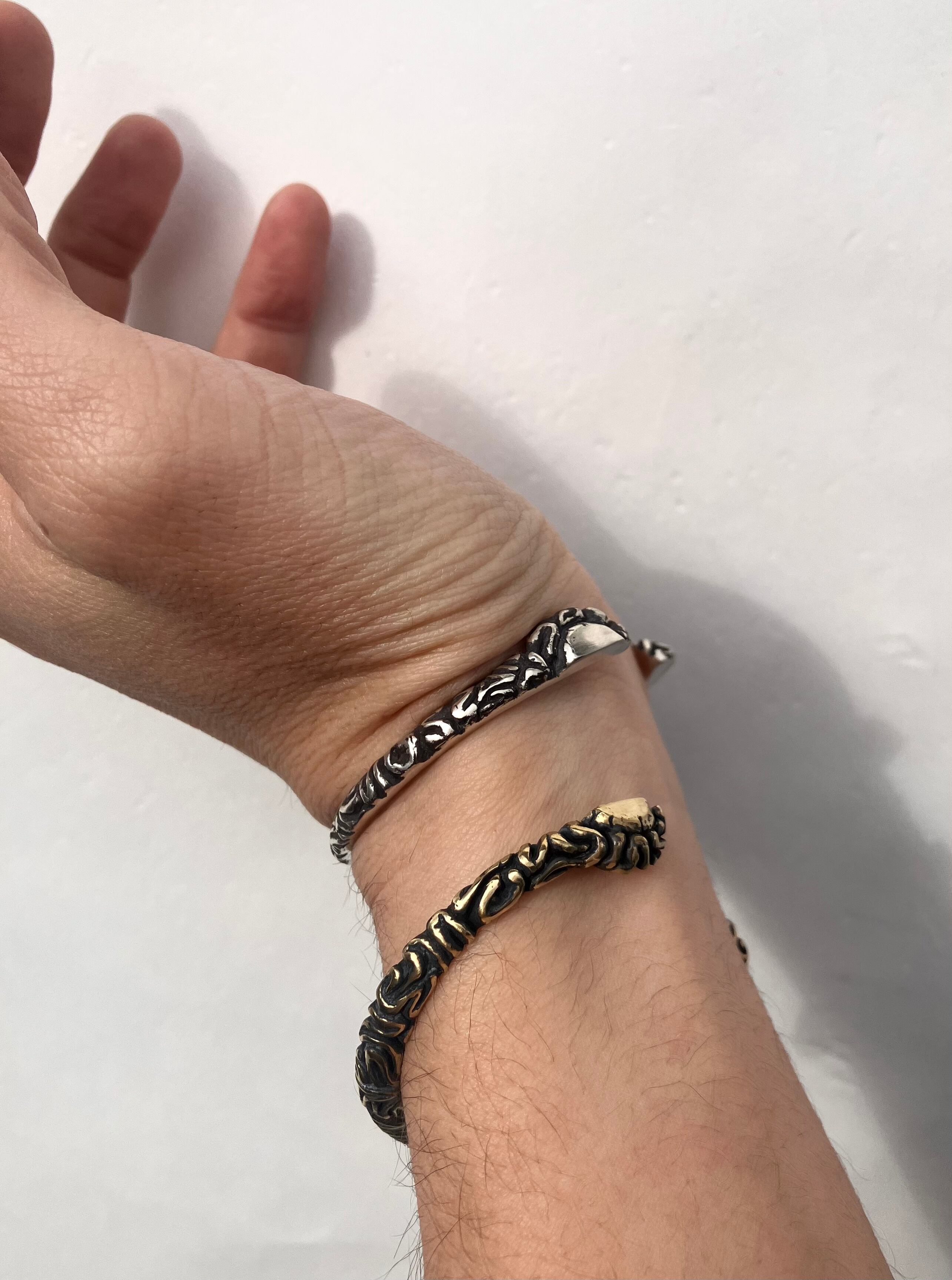 half brain bangle silver