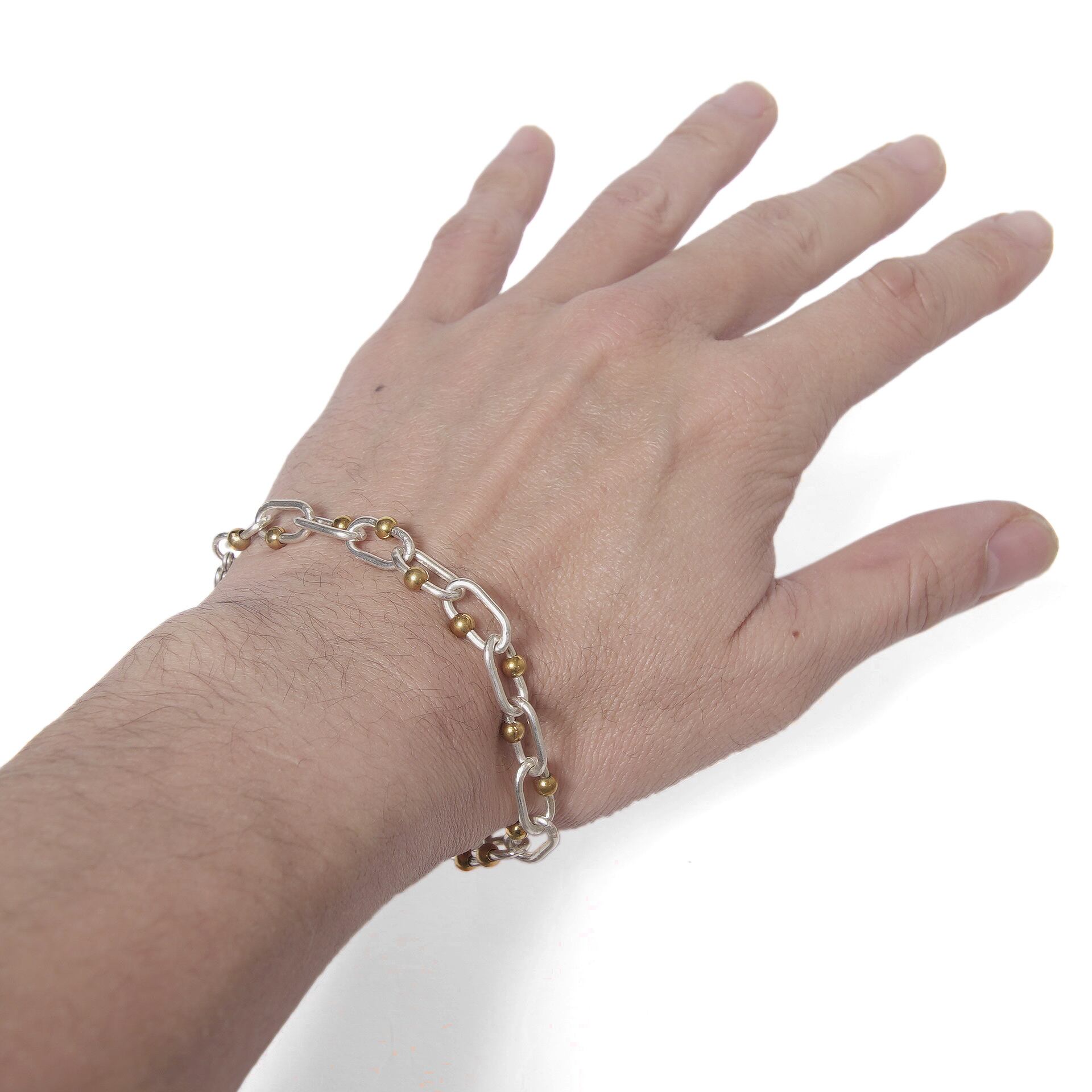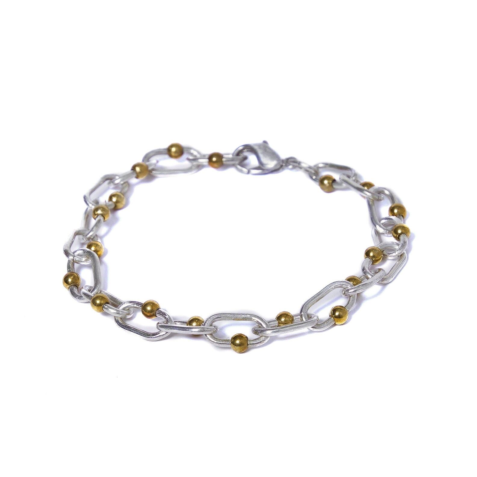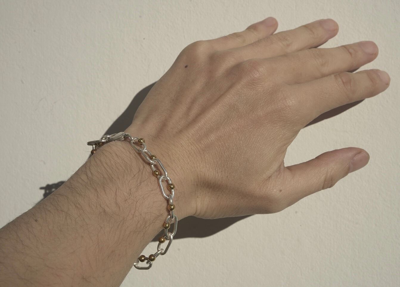 シルバー925のチェーンに丸い真鍮を組み合わせたブレスレットになります。