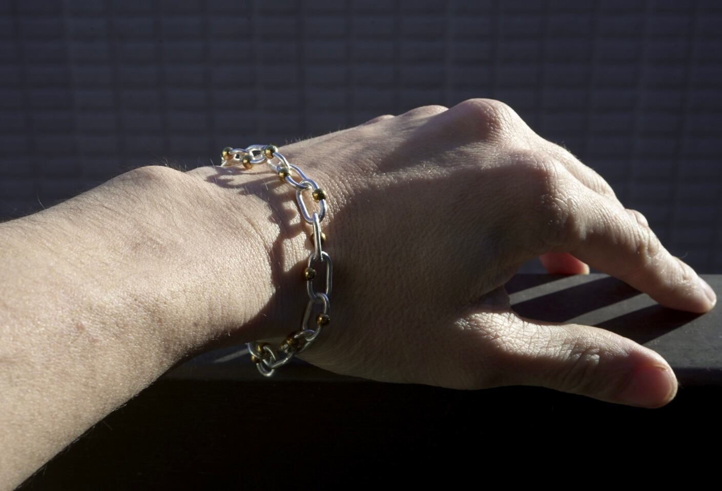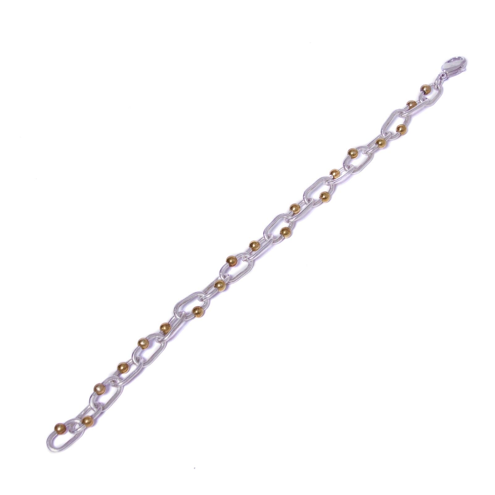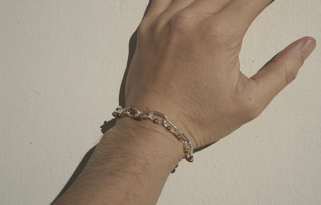 シルバー925のチェーンに丸い真鍮を組み合わせたブレスレットになります。