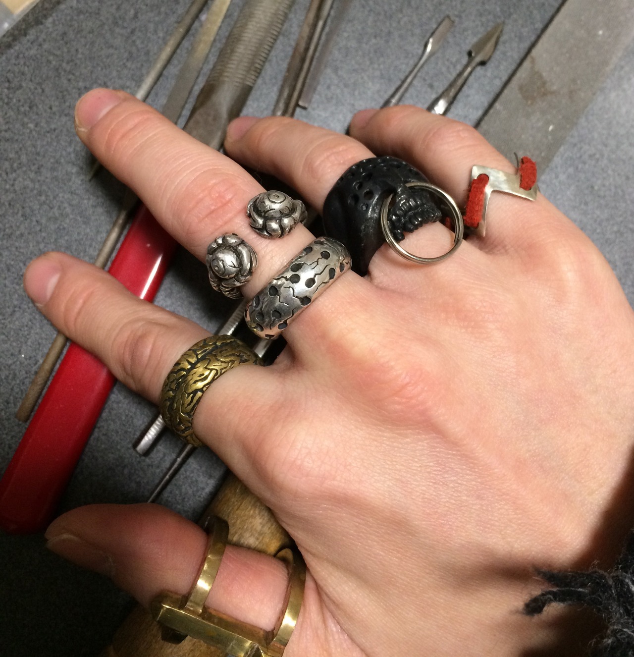 シンプルな形のリングに多くの精子模様が刻まれてます。